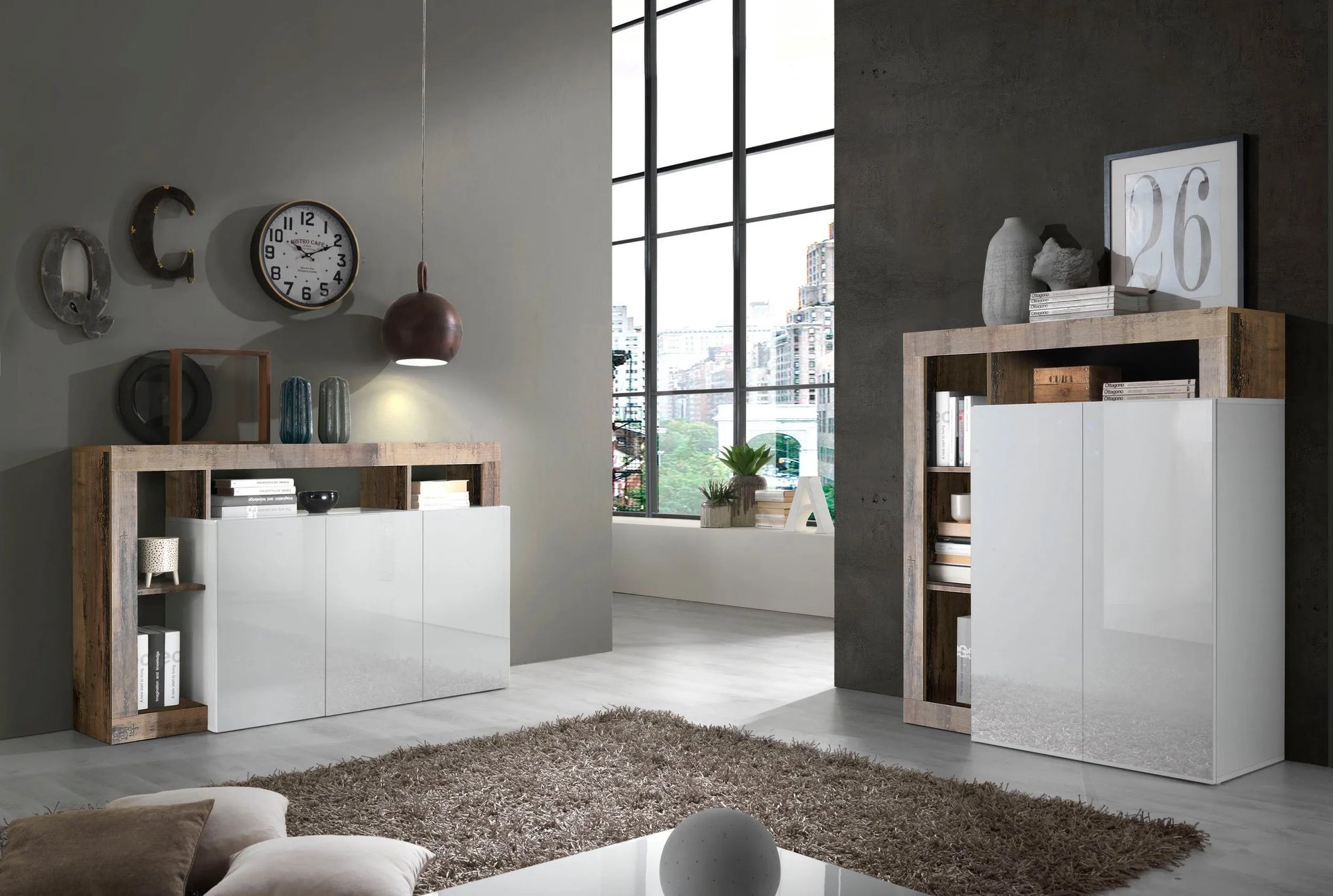 Kolekcija Hamburg piedāvā balta spīdīga lamināta augstās un zemās kumodes, kā arī viesistabu iekārtu komplektus ar bumbierkoka un tumša oksīda imitācijas rāmjiem.