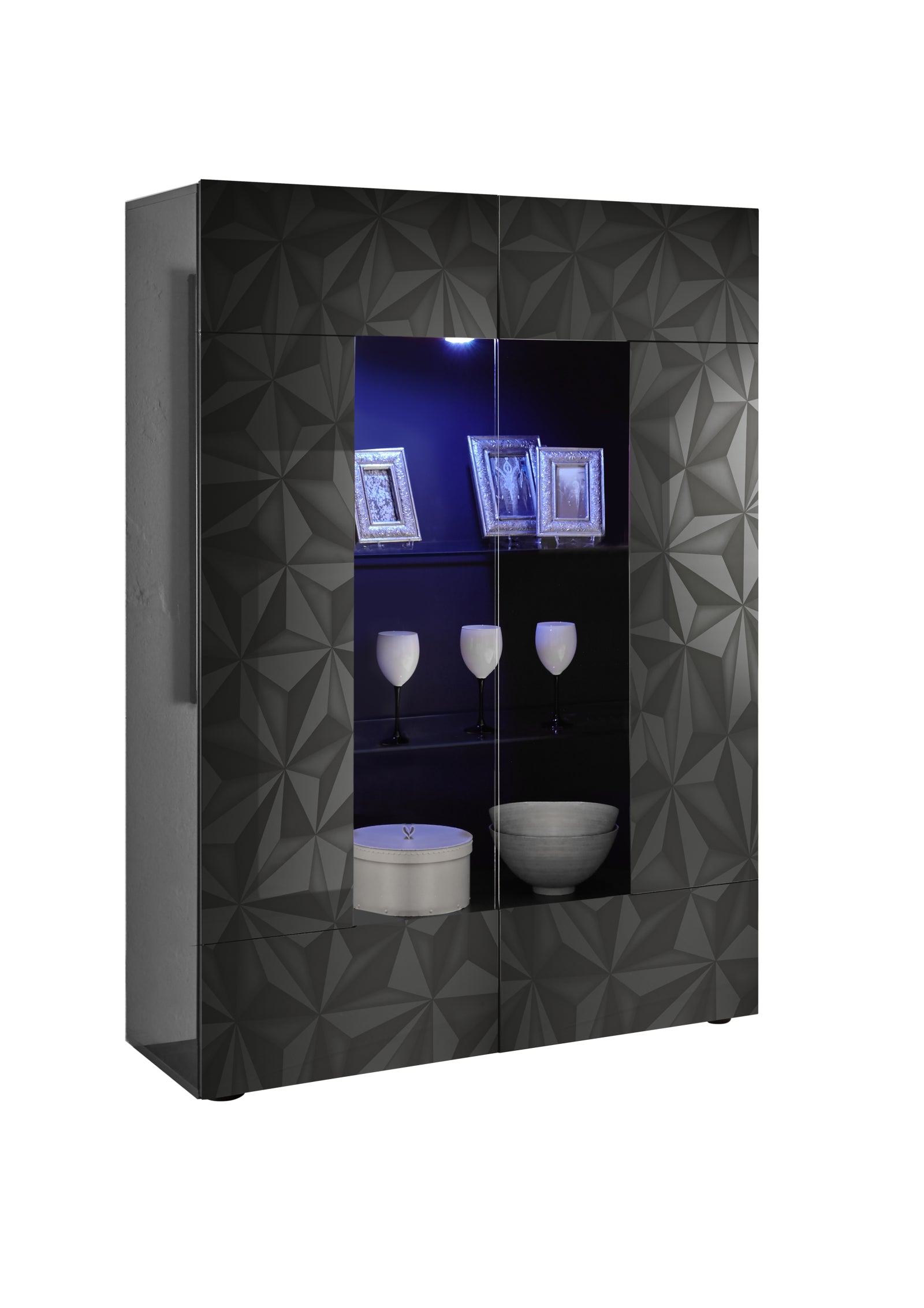 Stikla vitrīna, augstā kumode PRISMA durtiņas ar 3D raksta ilūziju spīdīgi baltā vai spīdīgi pelēkā krāsā būs funkcionāls un stilīgs papildinājums jūsu interjeram.